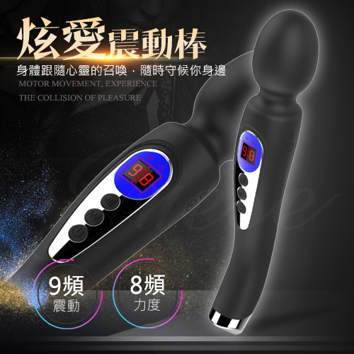 炫愛 9頻震動x8頻力度 液晶顯示矽膠震動按摩棒-黑