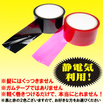 この「ボンテージテープ」は、静電気を利用したSM用拘束テープです。ガムテープやその他のテープとは異なり、粘着性はまったく無いためベタ付かず体毛なども付着しません。こんなに簡単に使えるのに、外観はSMの雰囲気バッチリなので、盛り上がりも最高潮!!