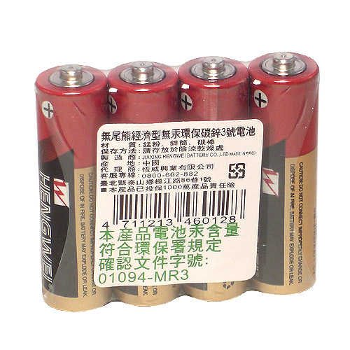 HENGWEI3號環保碳鋅電池一盒(60顆入)