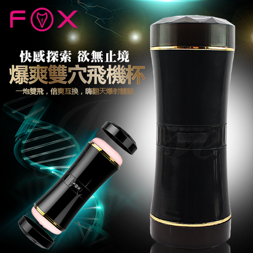 英國FOX-雙趣S1 雙穴貫通超爽飛機自慰杯(陰唇+口交)-黑